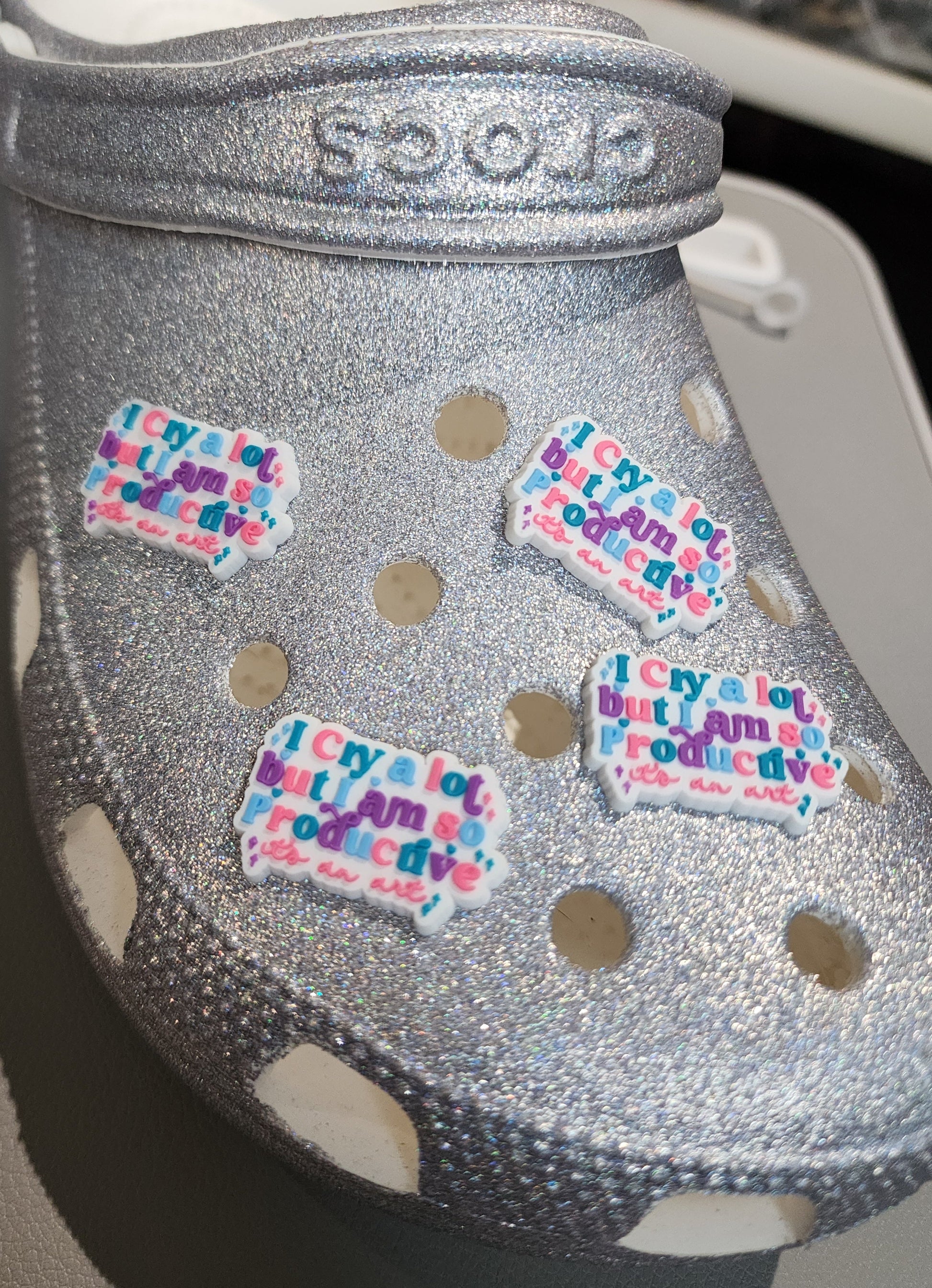 This is the perfect Shoe Charm featuring Taylor Swift's relatable quote "I Cry A Lot But I am So Productive, It's an Art". Get ready to elevate your Swiftie Merch game and let your feet do all the talking!!!